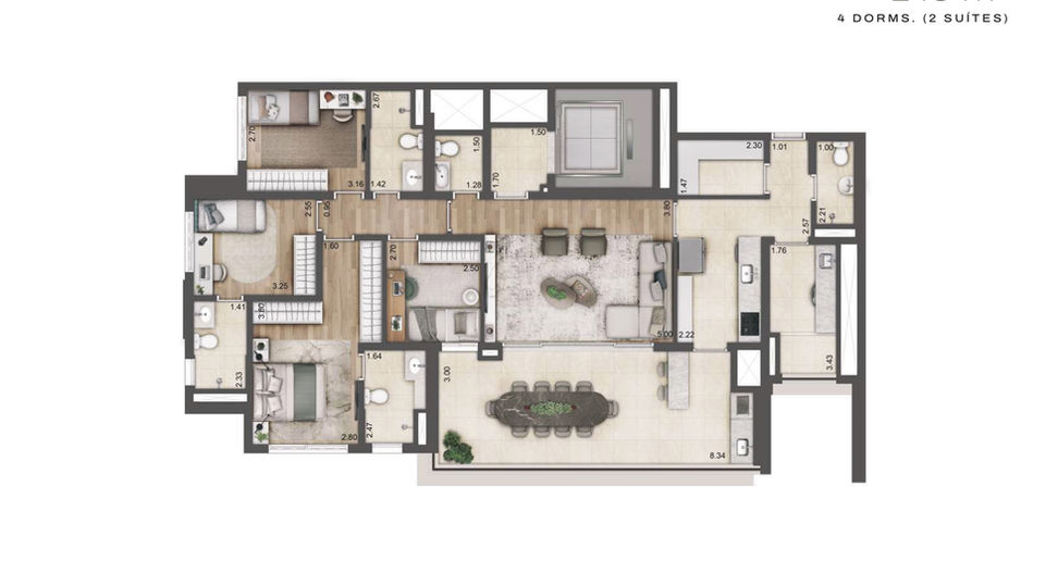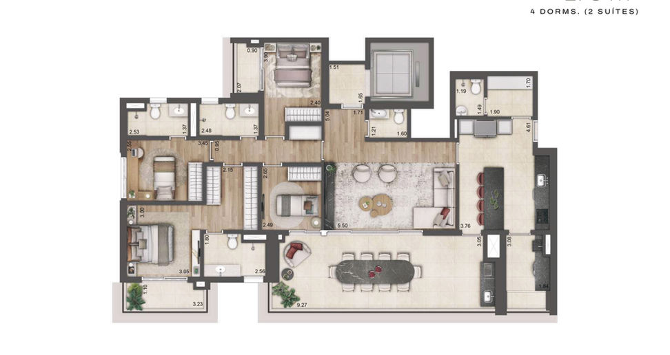 Cada detalhe foi cuidadosamente planejado para proporcionar conforto, segurança e bem-estar aos seus moradores. As unidades variam de 2 a 4 dormitórios, atendendo diferentes perfis de famílias e investidores.