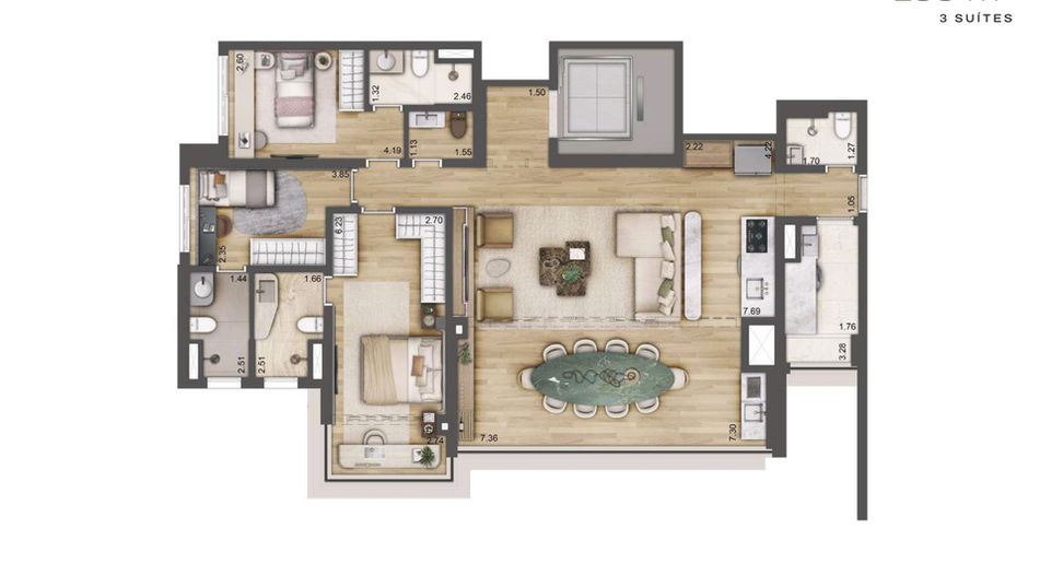 • Torre C: 84m² (1 Vaga ) 133m² (2 Vagas) e 170m² (2 Vagas)